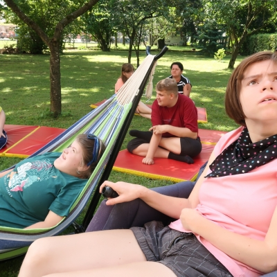 Chillout Korzystamy z pogody i łapiemy słoneczko☀️ Zdjęcia przedstawiają podopiecznych podczas zajęć terapeutycznych.