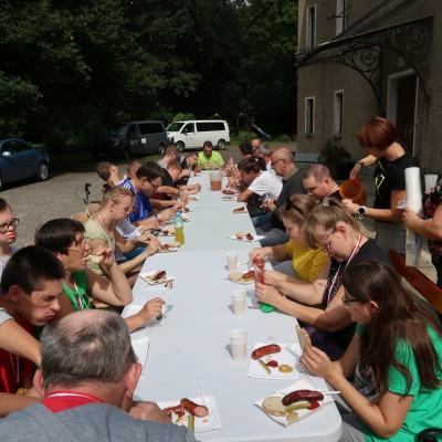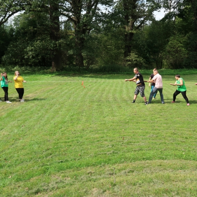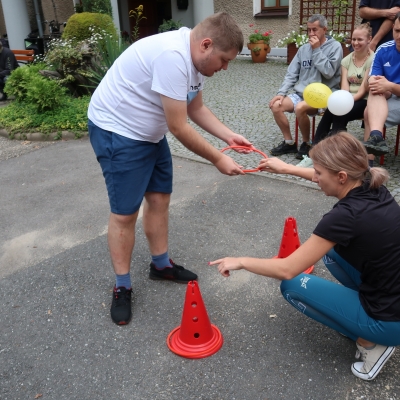 30.08.2022r. na terenie Naszego Domu, odbył się DZIEŃ SPORTU. Zwarci i gotowi stawiliśmy się do przygotowanych dyscyplin sportowych. Ubrani w wygodne stroje i obuwie sportowe wystartowaliśmy…. Podczas wspólnej zabawy, każdy uczestnik mógł spróbować swoich sił w indywidualnych i grupowych konkurencjach sportowych. Był to wspaniały czas. Wszystkich nagrodzono medalami. Na zakończenie imprezy odbył się grill. A jak się bawiliśmy? Sami zobaczcie w galerii