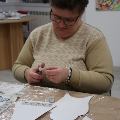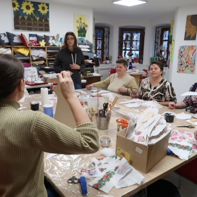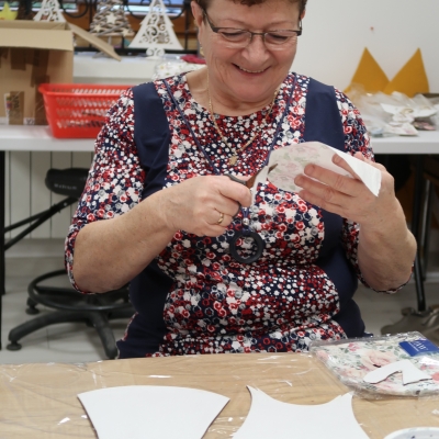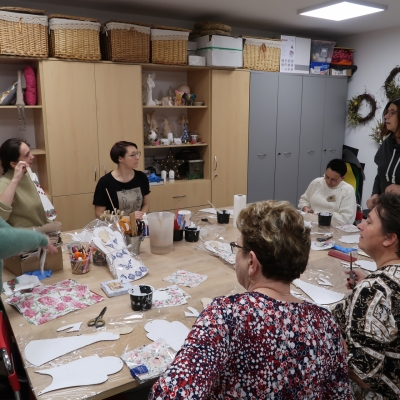 Panie wspólnie ozdabiały drewniane anioły